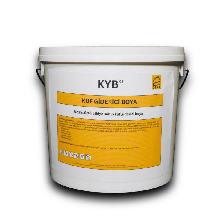 KYB-05 (Küf giderici boya), çok fonksiyonlu küf önleyici etkiye sahip, yayılabilir, yüksek opak organo-silikat bir boyadır.