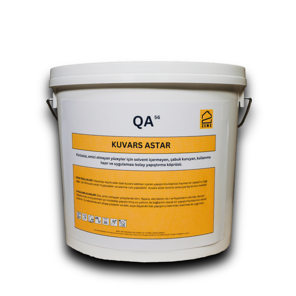 Yapışmayı teşvik eden özel kuvars katkıları içeren yapıştırma köprüsü kaymaz bir yapıştırıcı bağı sağlar. KG-56 kuvars astar fırçalanabilir ve üzerine rulo yapılabilir. Kuvars astar kontrol amacıyla bej-kırmızı renklidir.